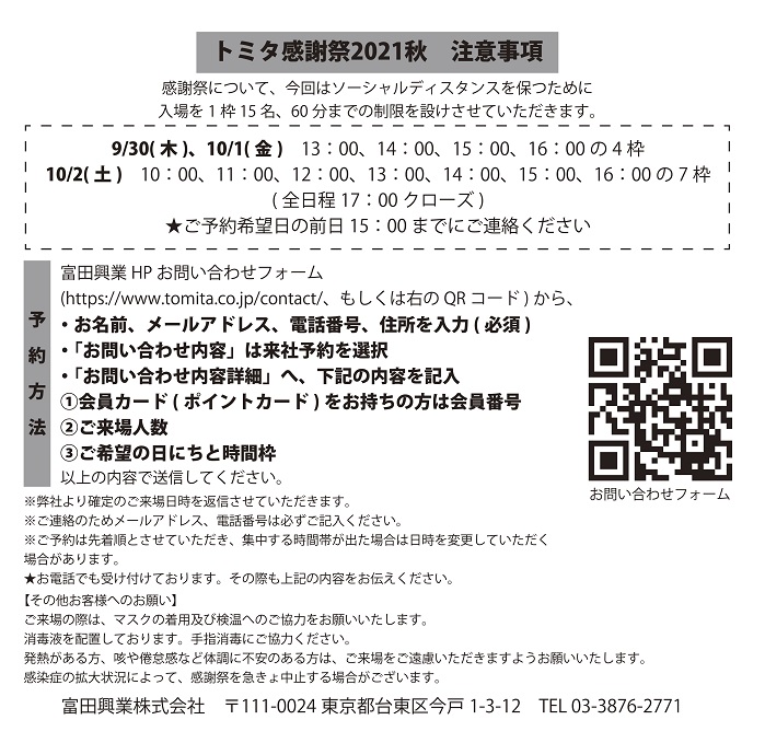 【予約方法】富田興業ホームページ「contact」のお問い合わせフォームより、
